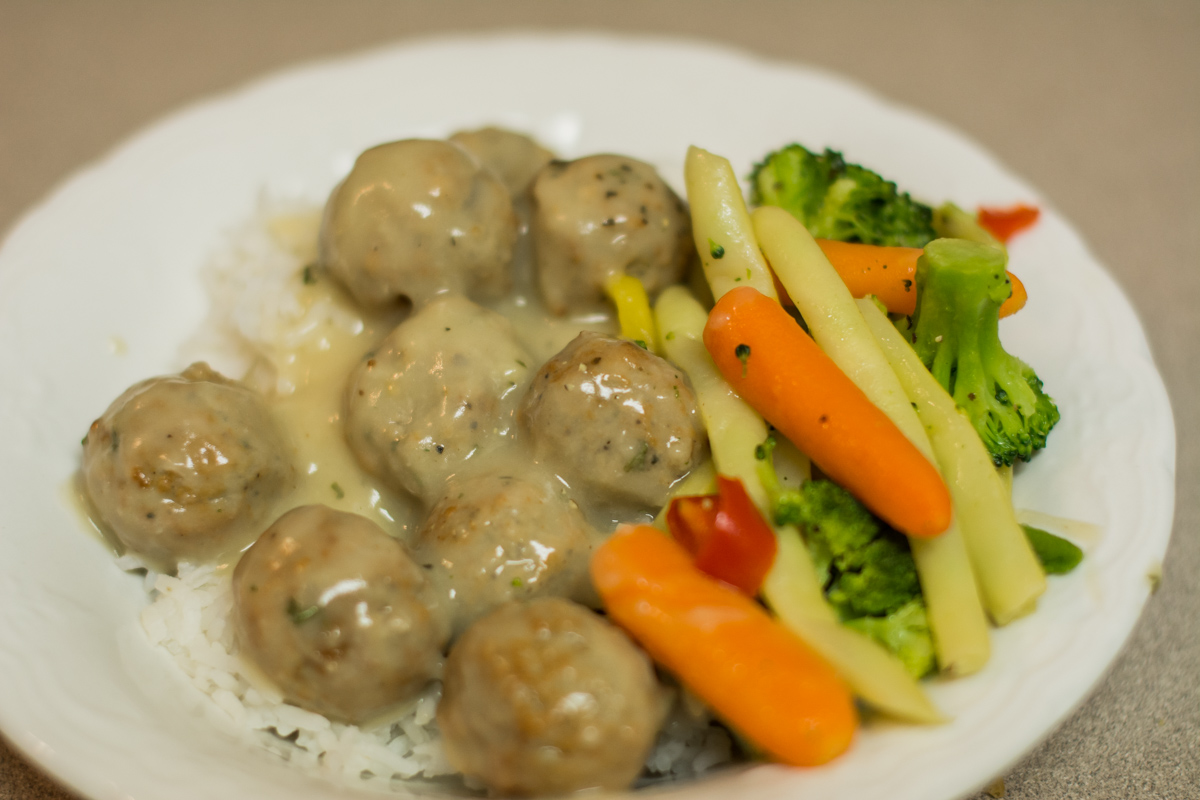Monday: Swedish Ground Turkey Meatballs + Rice + Steamed Veggies
